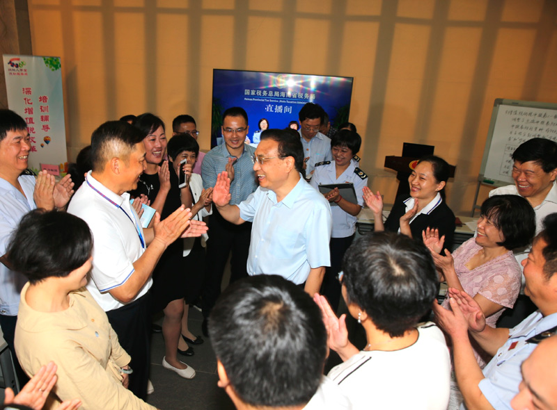 李克强总理3月27日上午在海南省海口市考察时,来到当地税务部门在企业设立的纳税人培训流动服务点。基层税务人员正在为10余家...